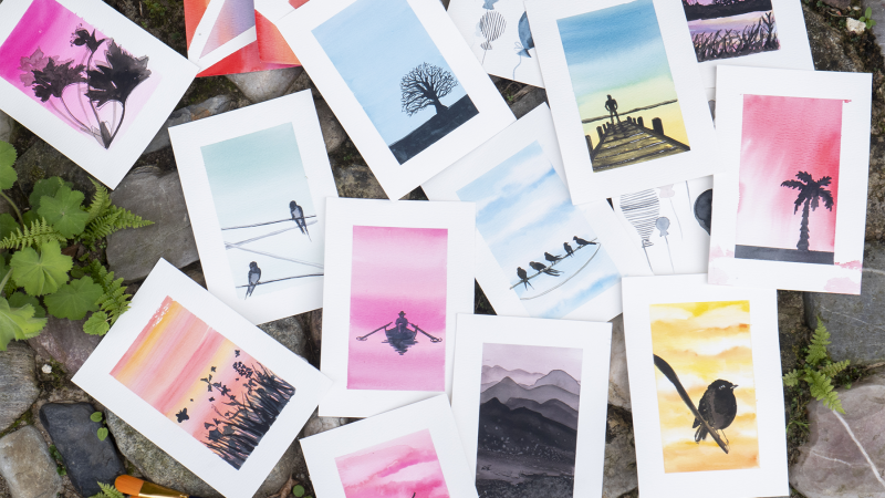 We hebben aquarel workshops in verschillende thema’s; Insecten, Luchten en silhouetten of abstract
