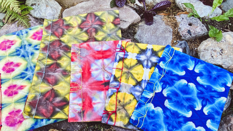 Maak je eigen unieke patroonpapier geïnspireerd op het Japanse Orizomegami en maak er een handgemaakt notitieboekje van. Orizome betekend "gevouwen verven" en is een Japanse papierkunsttechniek die "origami'' papiervouwen en dompelverven met gekleurd pigment combineert.